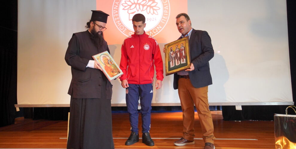 Ο Μητροπολίτης Πειραιώς ευχαρίστησε τον ποδοσφαιριστή Χρήστο Μουζακίτη για την παρουσία του στα Εκπαιδευτήρια της Μητροπόλεως Πειραιώς.