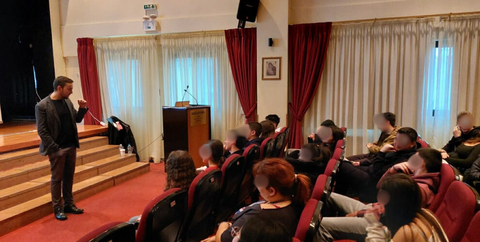 Τη Δευτέρα 26.1.26 είχαμε τη χαρά και την τιμή να υποδεχτούμε στα Εκπαιδευτηρια μας τον Loïc Balory, examiner and teacher trainer στη Hellenic American Union. Μίλησε στους μαθητές και τις μαθήτριες μας που θα λάβουν μέρος στις εξετάσεις B2 και C2 Michigan του Μαΐου, δίνοντας τους συμβουλές και κατευθυντηριες γραμμές για το Writing και το Speaking. Οι υποψήφιοι μαθητές μας τον άκουσαν με προσοχή.